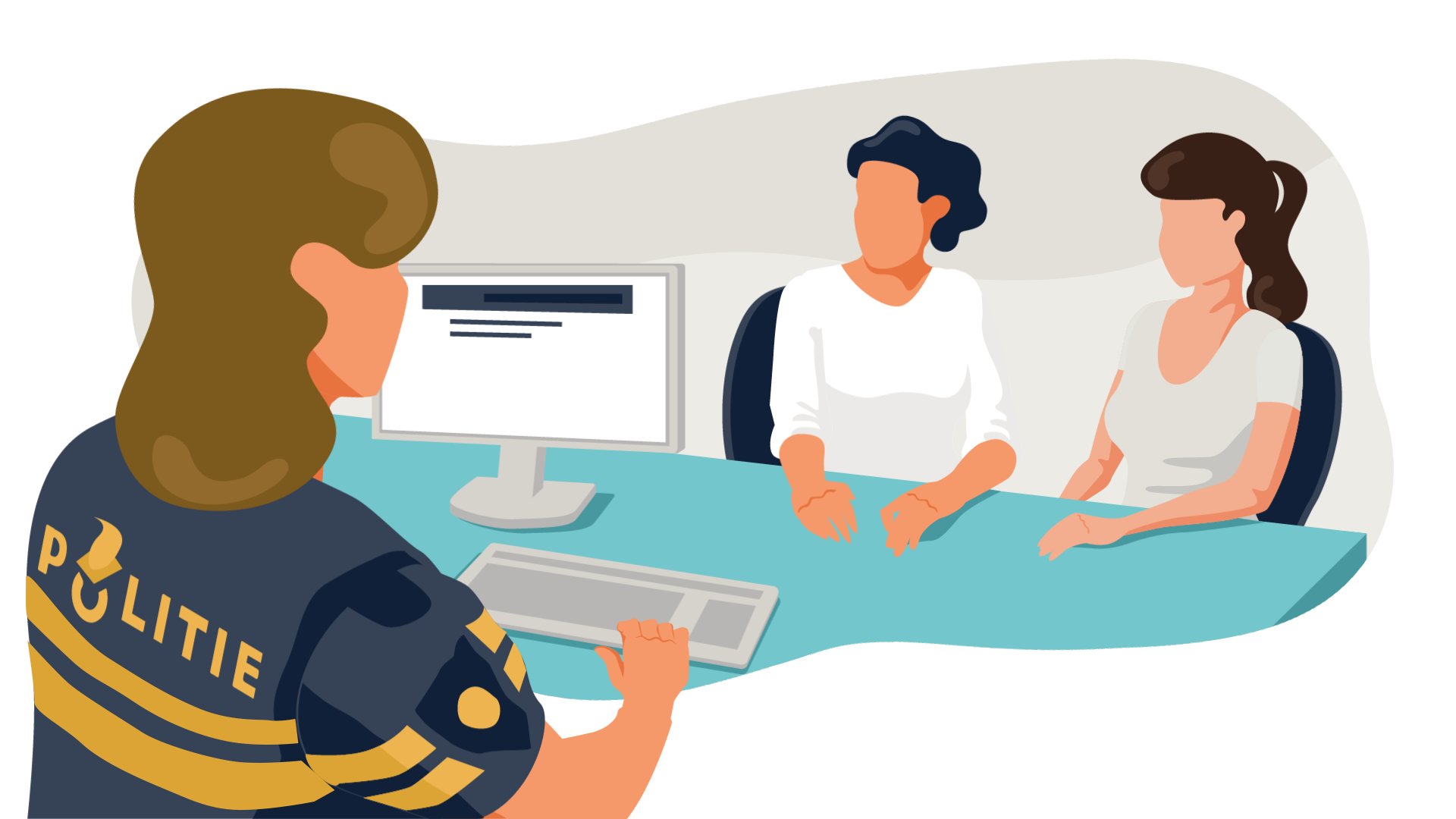 Misschien vindt iemand het prettig dat je meegaat naar de politie om aangifte te doen. Dan is het goed te weten dat je diegene dan kunt begeleiden tot aan de aangifteruimte. De aangifte zelf moet een slachtoffer alleen doen. Je kunt iemand wel helpen zich goed voor te bereiden. Voor praktische en emotionele ondersteuning kun je iemand ook doorverwijzen naar Slachtofferhulp Nederland.